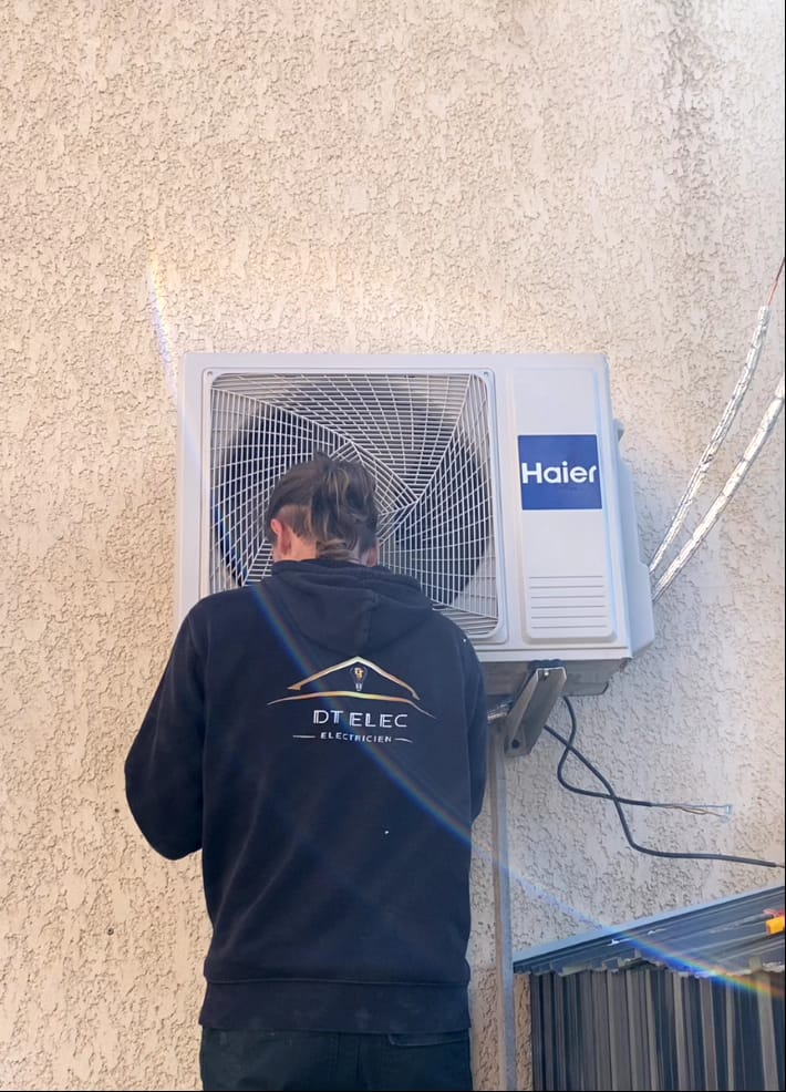 La durée dépend du type de système et de la configuration du logement. La pose d’un climatiseur split se réalise généralement en une demi-journée. Une installation multi-split sur plusieurs pièces peut nécessiter une à deux journées. DT ELEC évalue précisément la durée lors du devis gratuit.