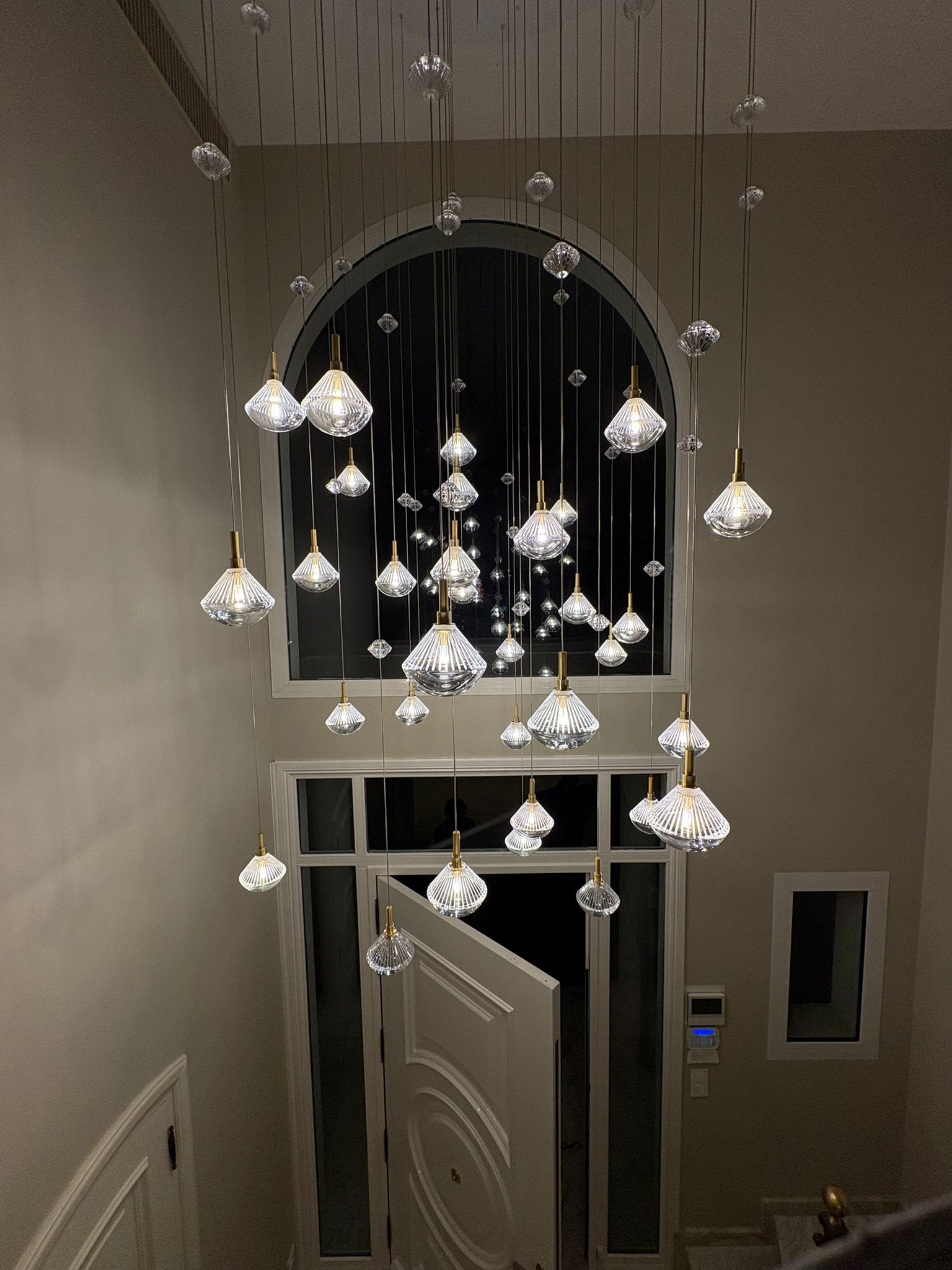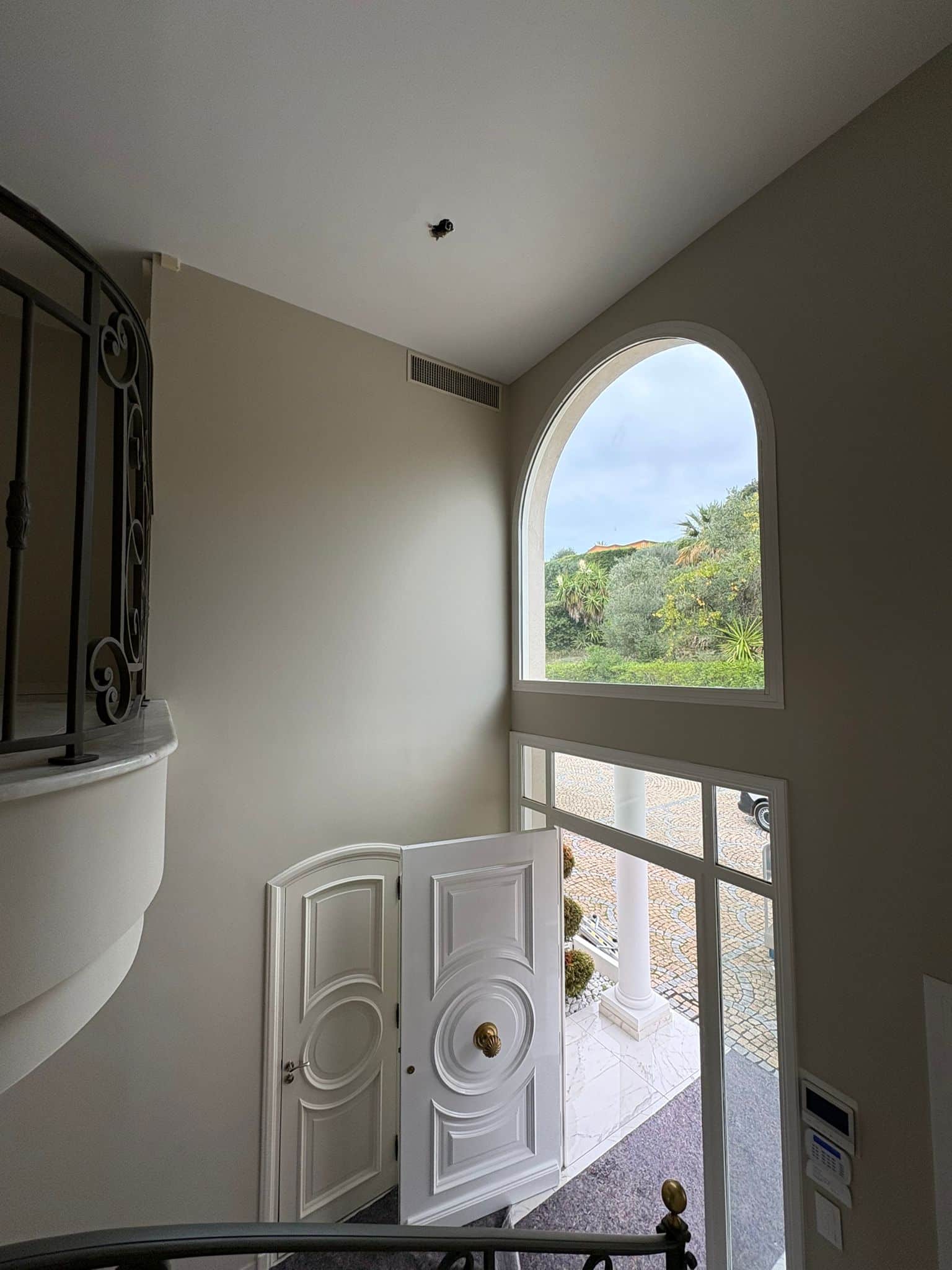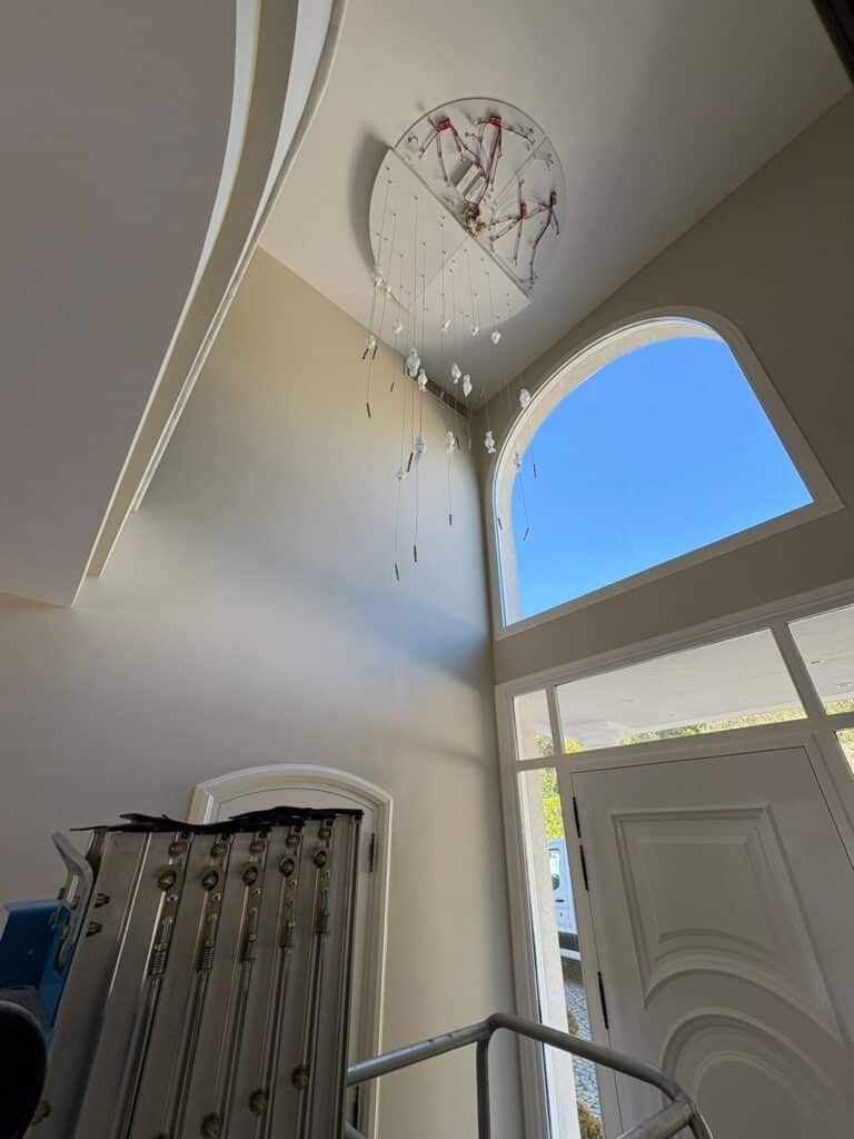 Quand la lumière transforme un hall d’entrée — pose d’un lustre BOOMA dans une villa à Mougins